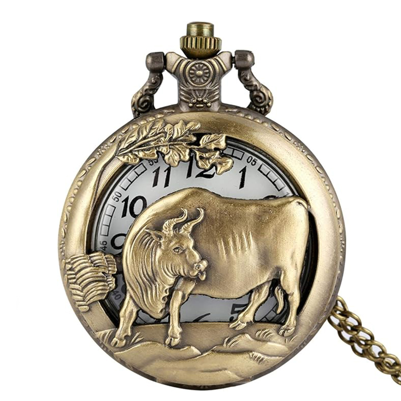 12간지 소띠 수입 정품 회중 시계_동물 수호 기념 황금 수입 여행 생일선물