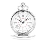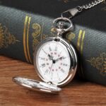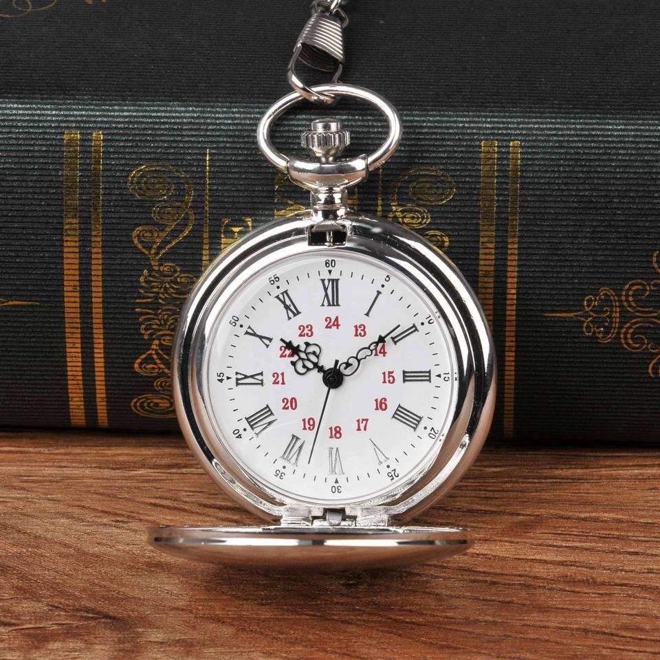 Silver White Roman Numerals Black Red Chain Necklace Pocket Watch Antique Vintage