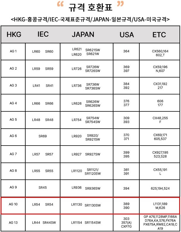 회중시계 5알 AG10 건전지 배터리 LR54 LR1130 호환