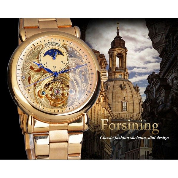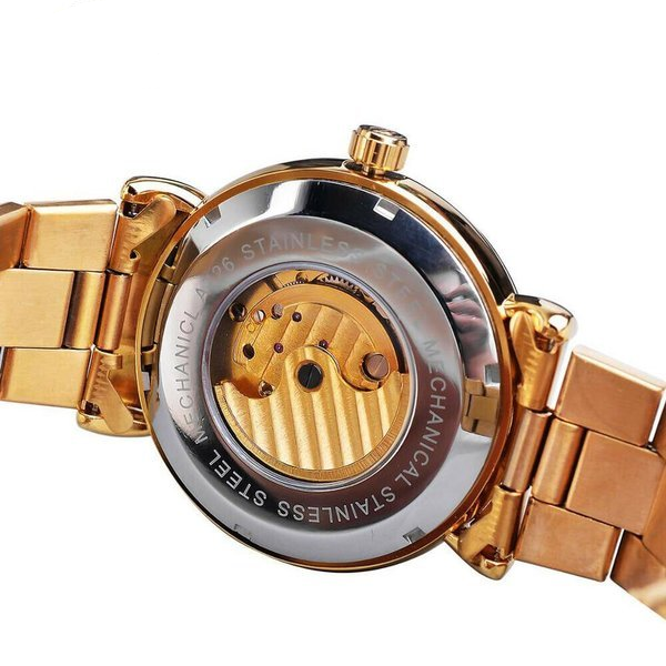 D-type luxury automatic winding wristwatch battery-free stainless steel